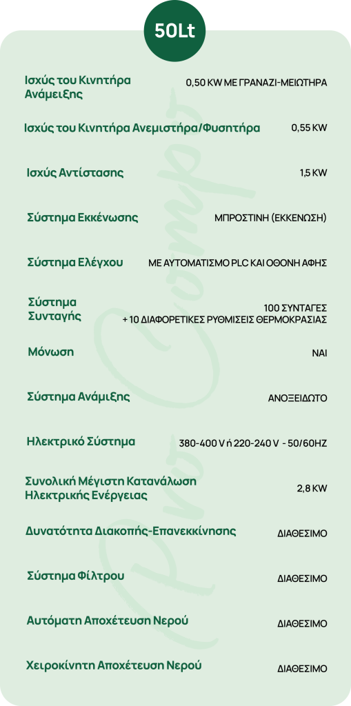 - το βασικό μοντέλο, για παραγωγή αποκλειστικά κόμποστ για λίπασμα
